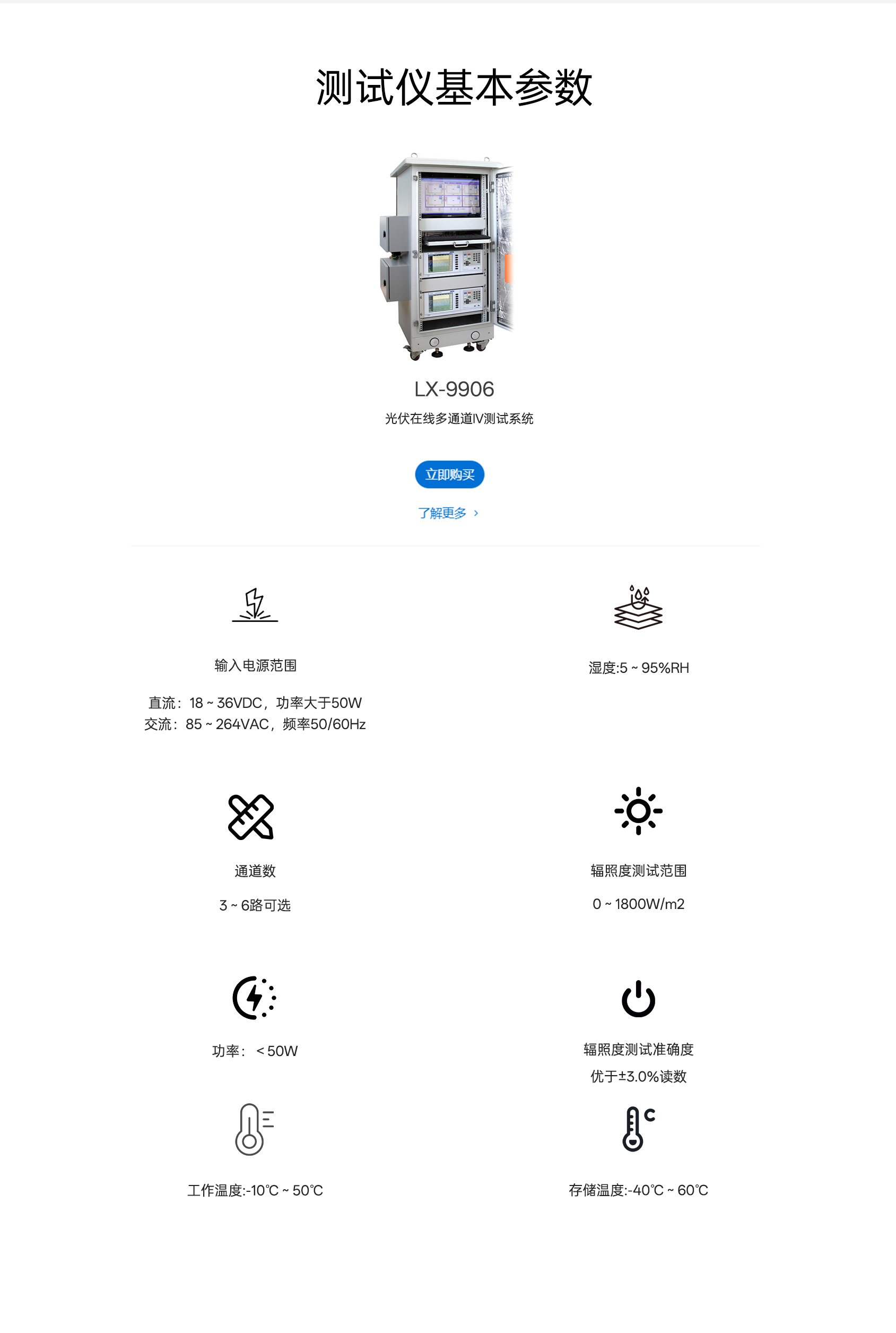 輻照度測試準確度 優于±3.0%讀數